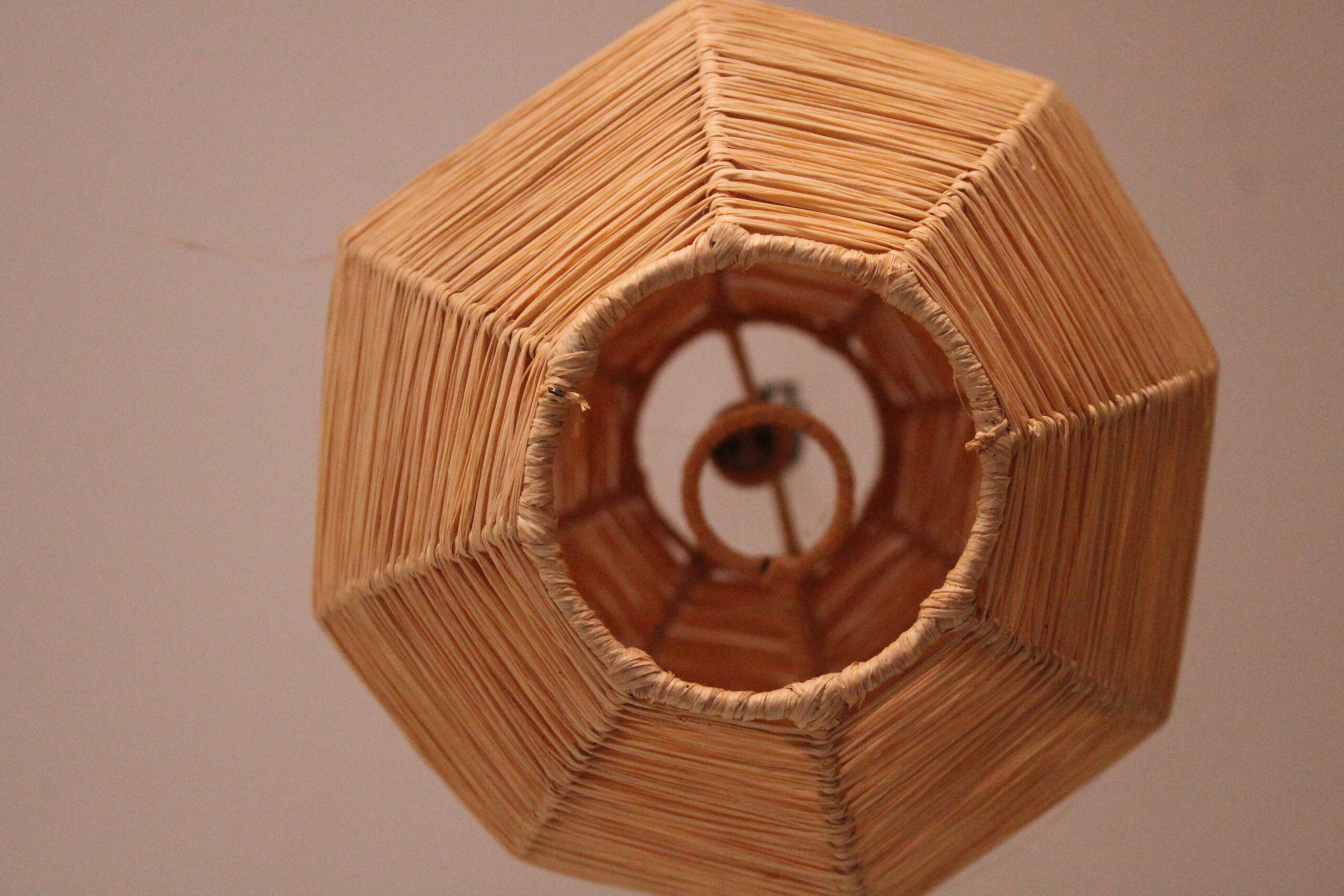 Hand-crafted hanging lamp in raffia