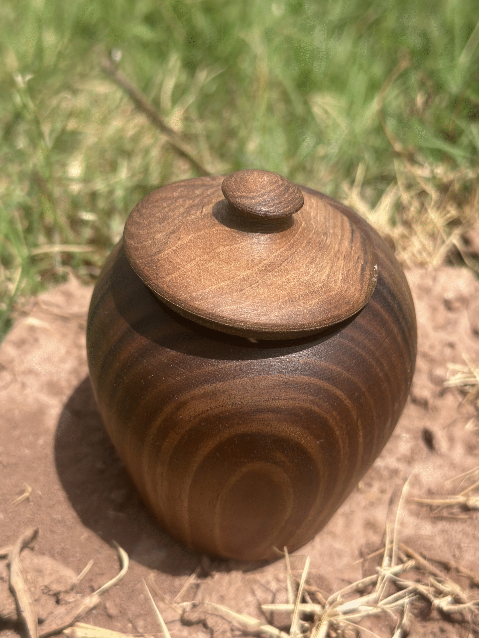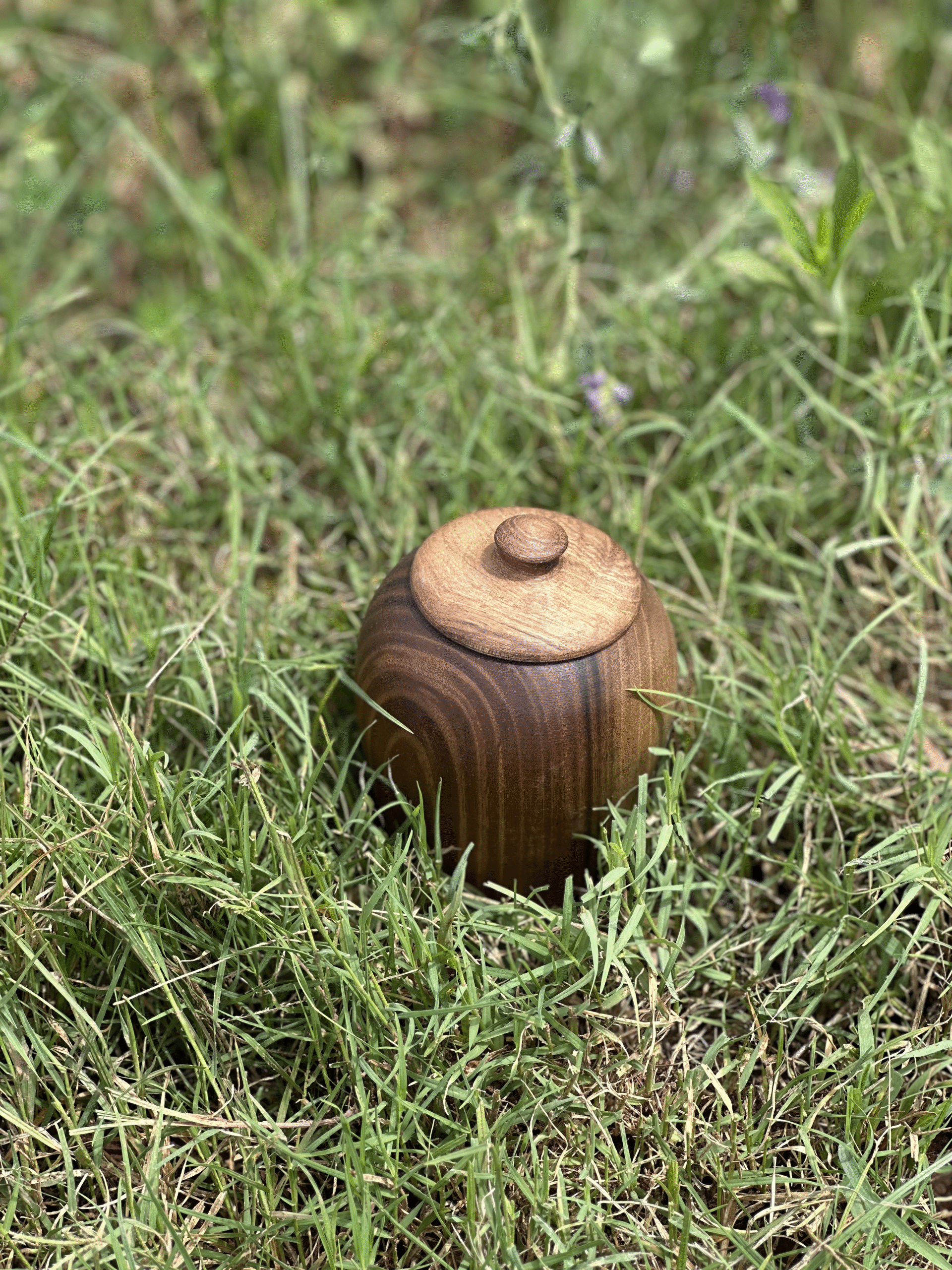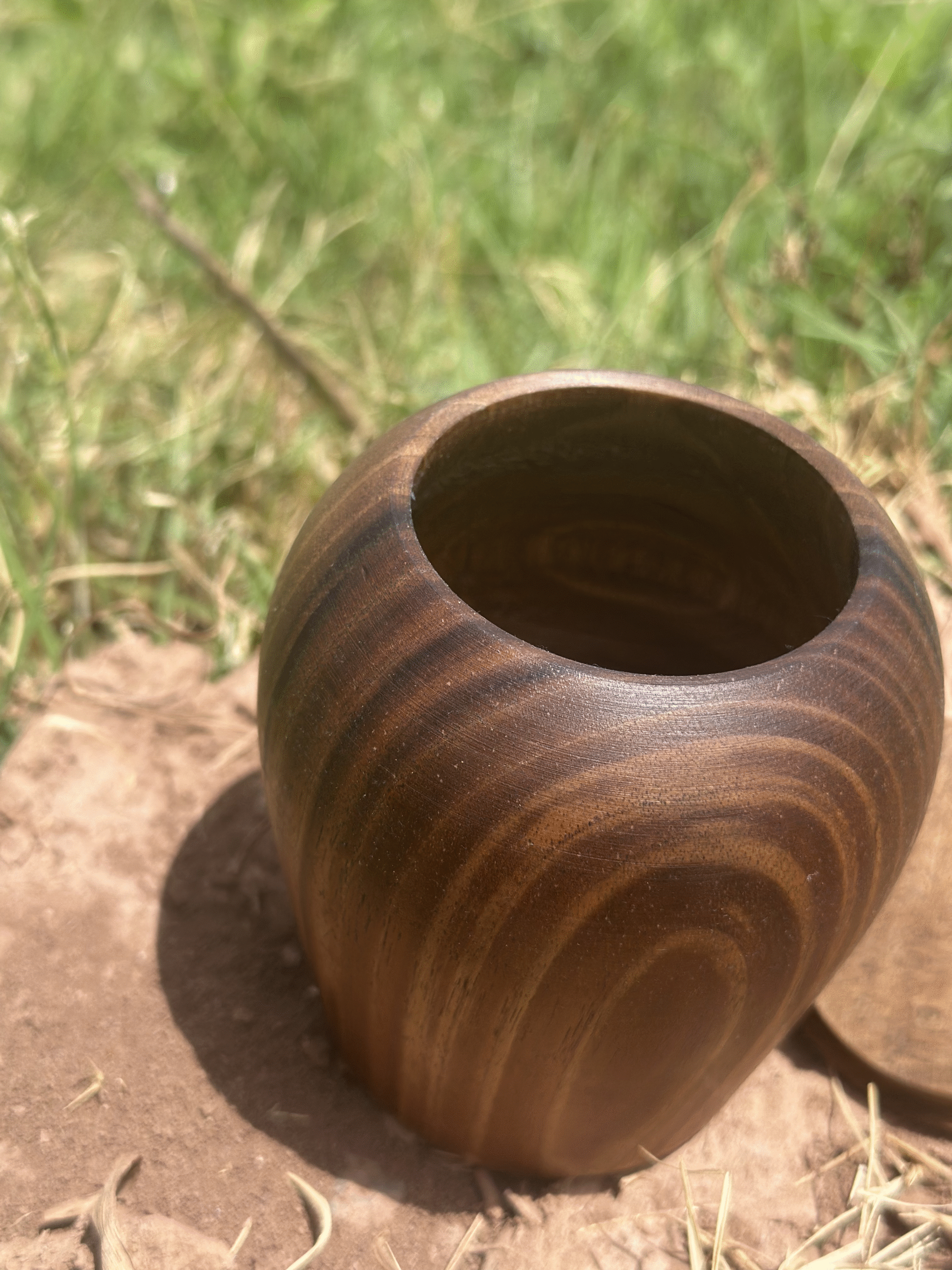 Handcrafted Walnut Wood Jar with Lid – Moroccan Artisan Work