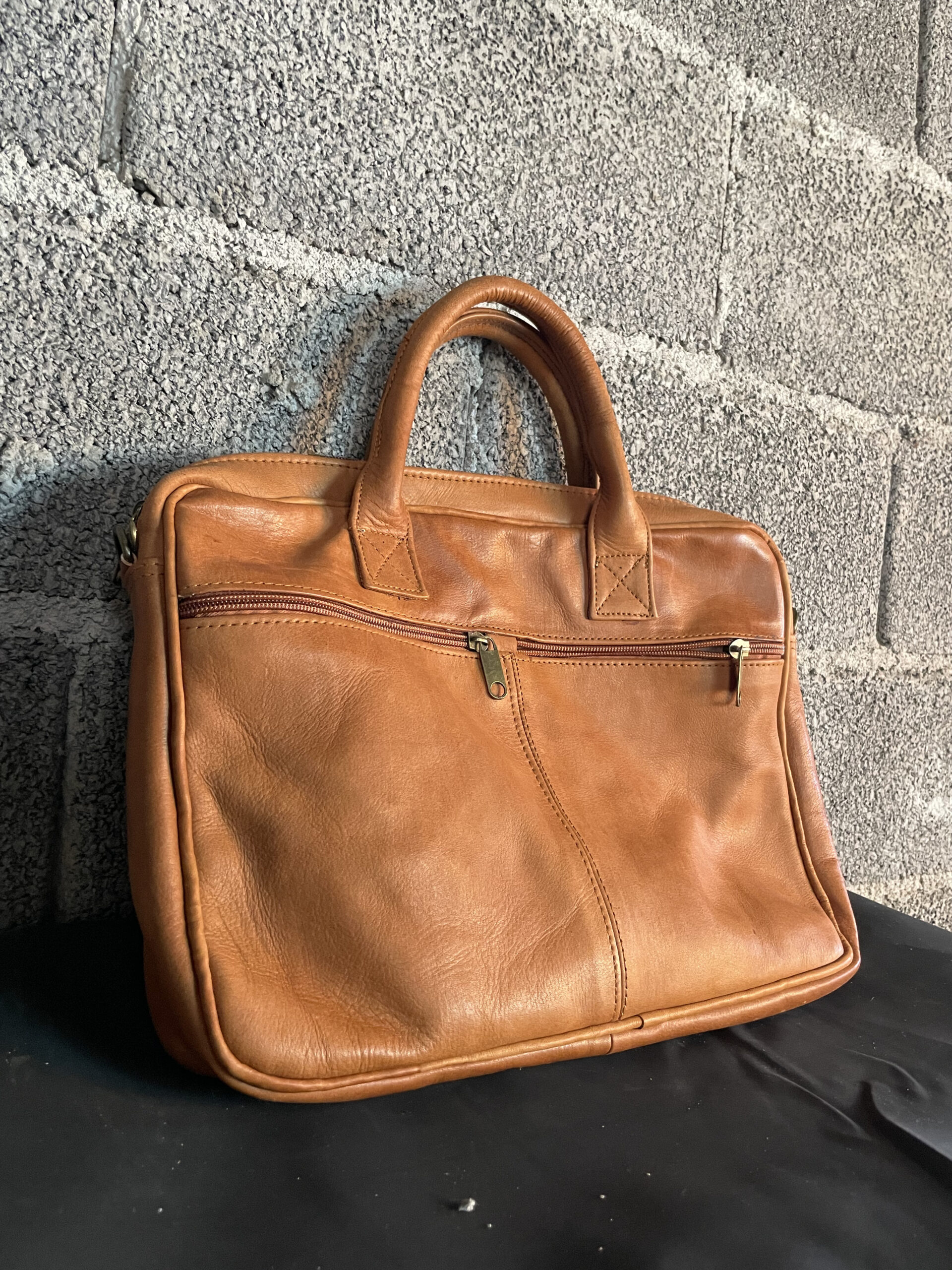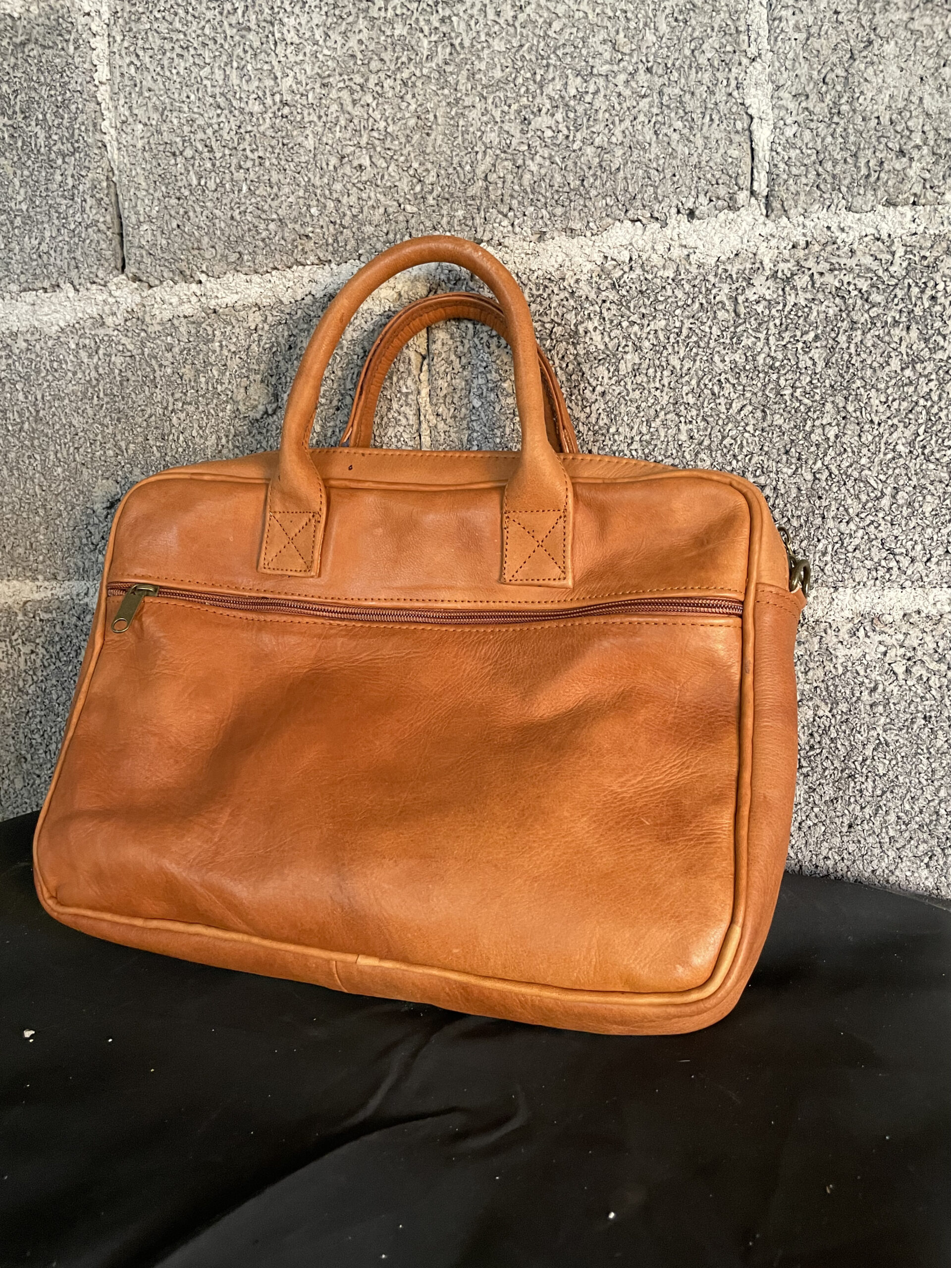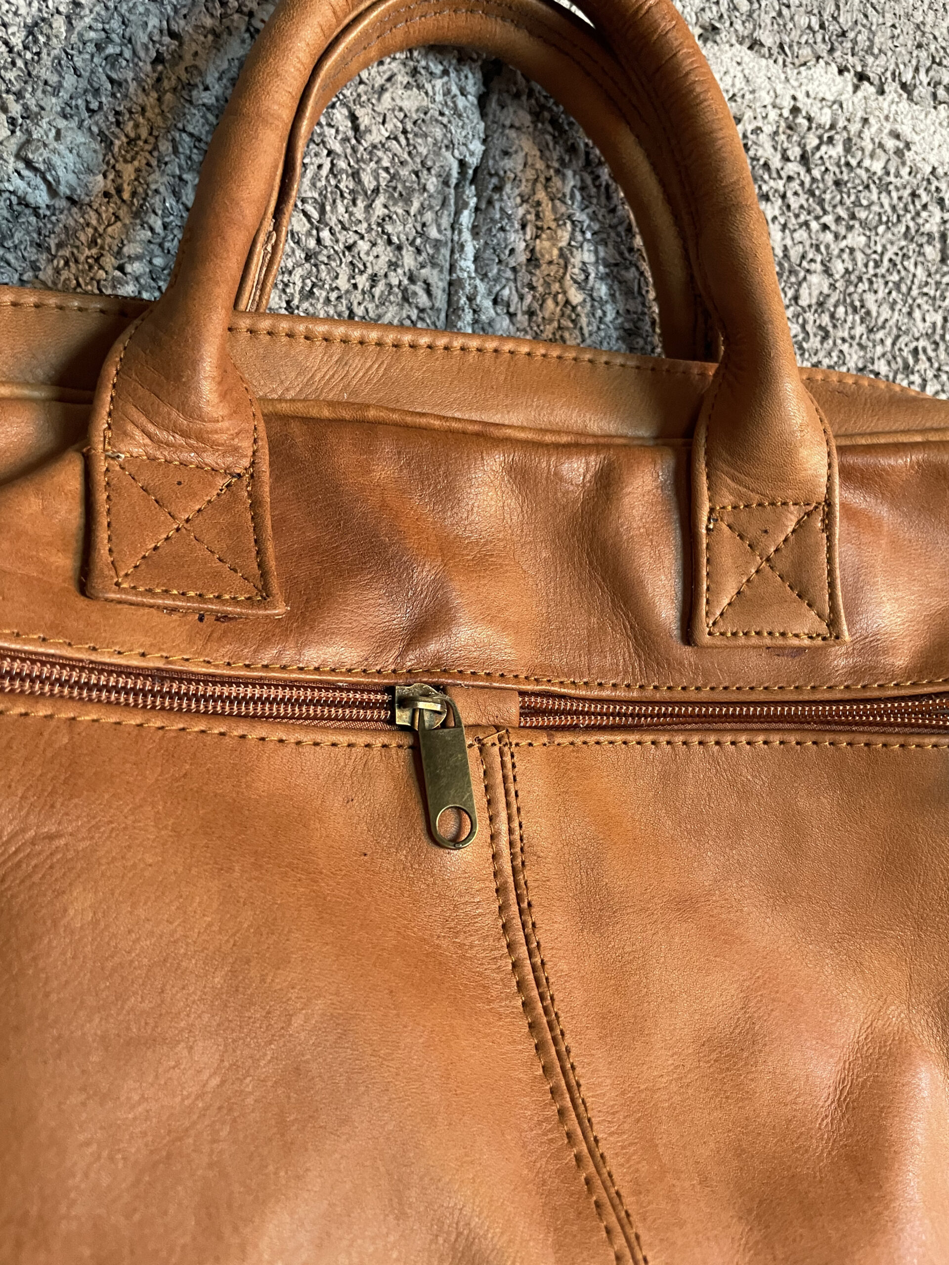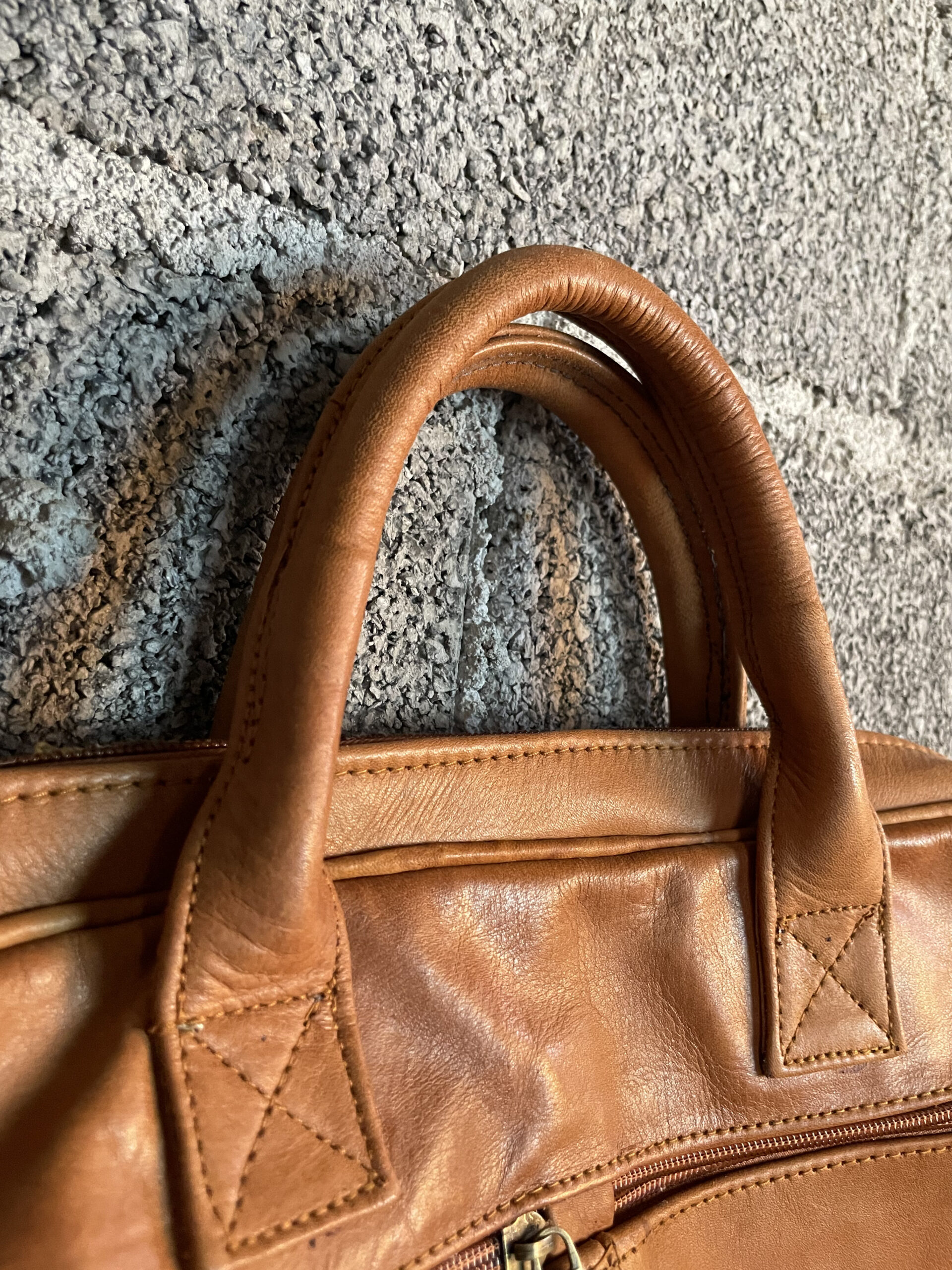 Featuring a spacious main compartment, secure zipper closure, and sturdy leather handles, it easily fits your laptop, documents, and daily essentials. The soft yet durable leather develops a unique patina over time, making each bag truly one of a kind.