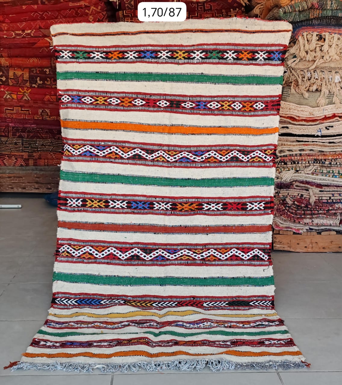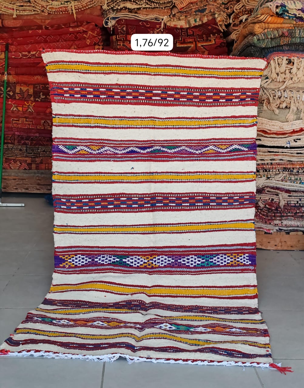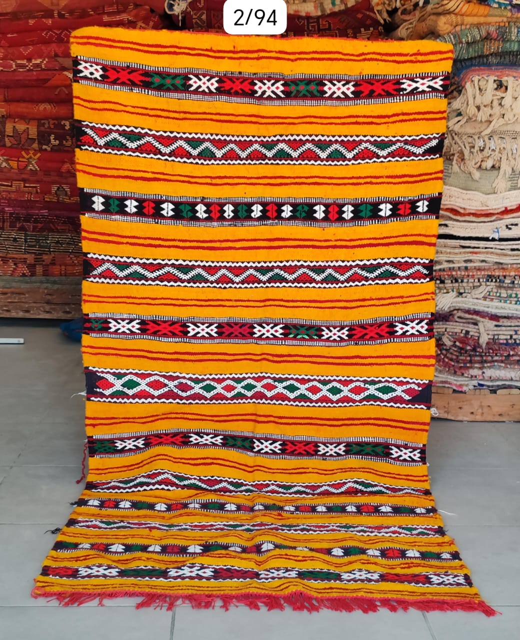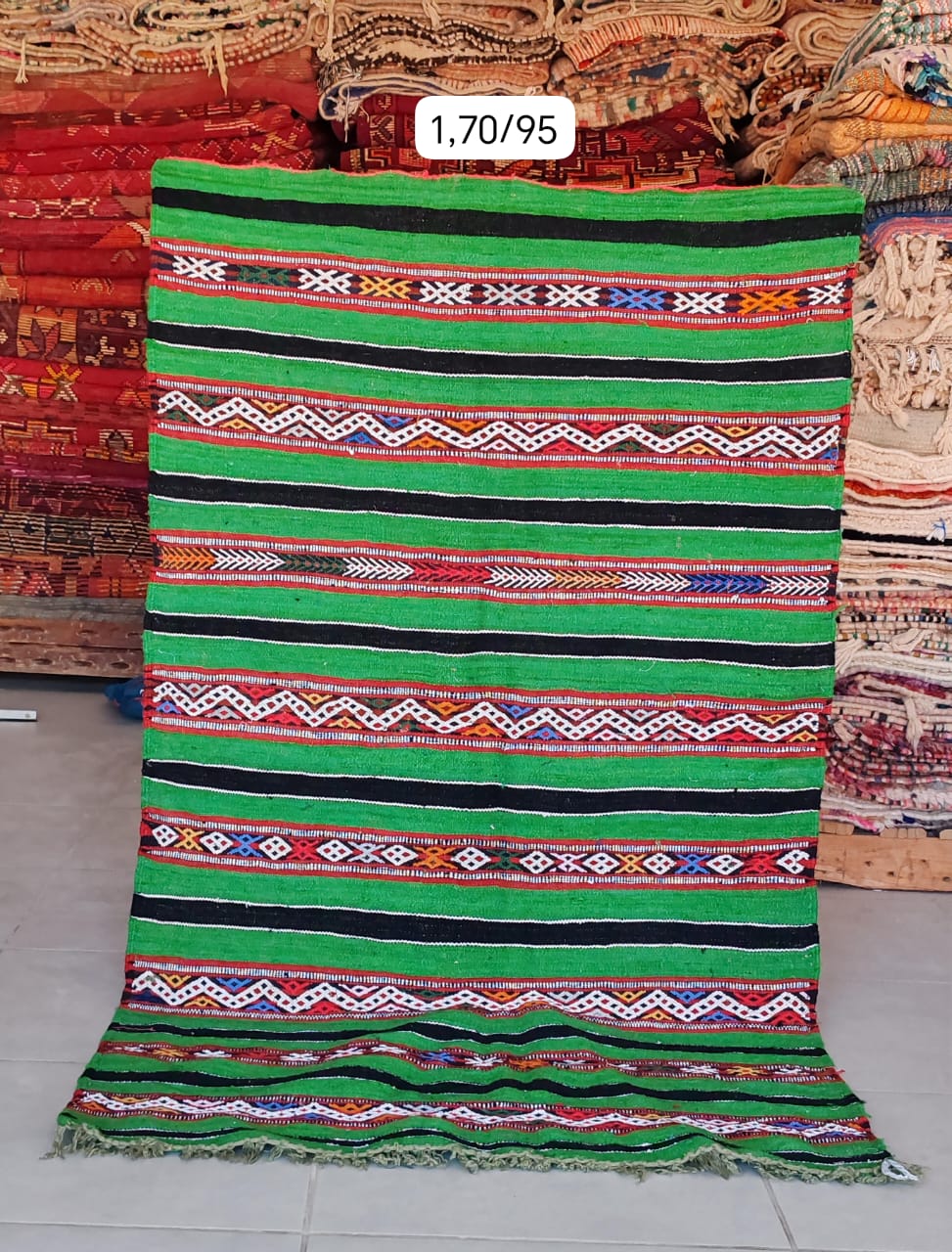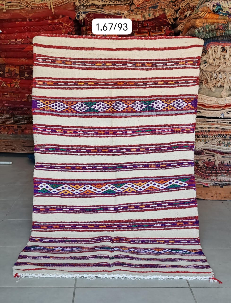 This handwoven Hanbel rug is crafted by skilled artisans using traditional weaving techniques from the Atlas region of Morocco. Lightweight, soft, and beautifully patterned, it features vibrant colors and symbolic Amazigh (Berber) motifs. Its elegant red tones make it perfect as a floor rug, wall tapestry, sofa throw, or bed cover.